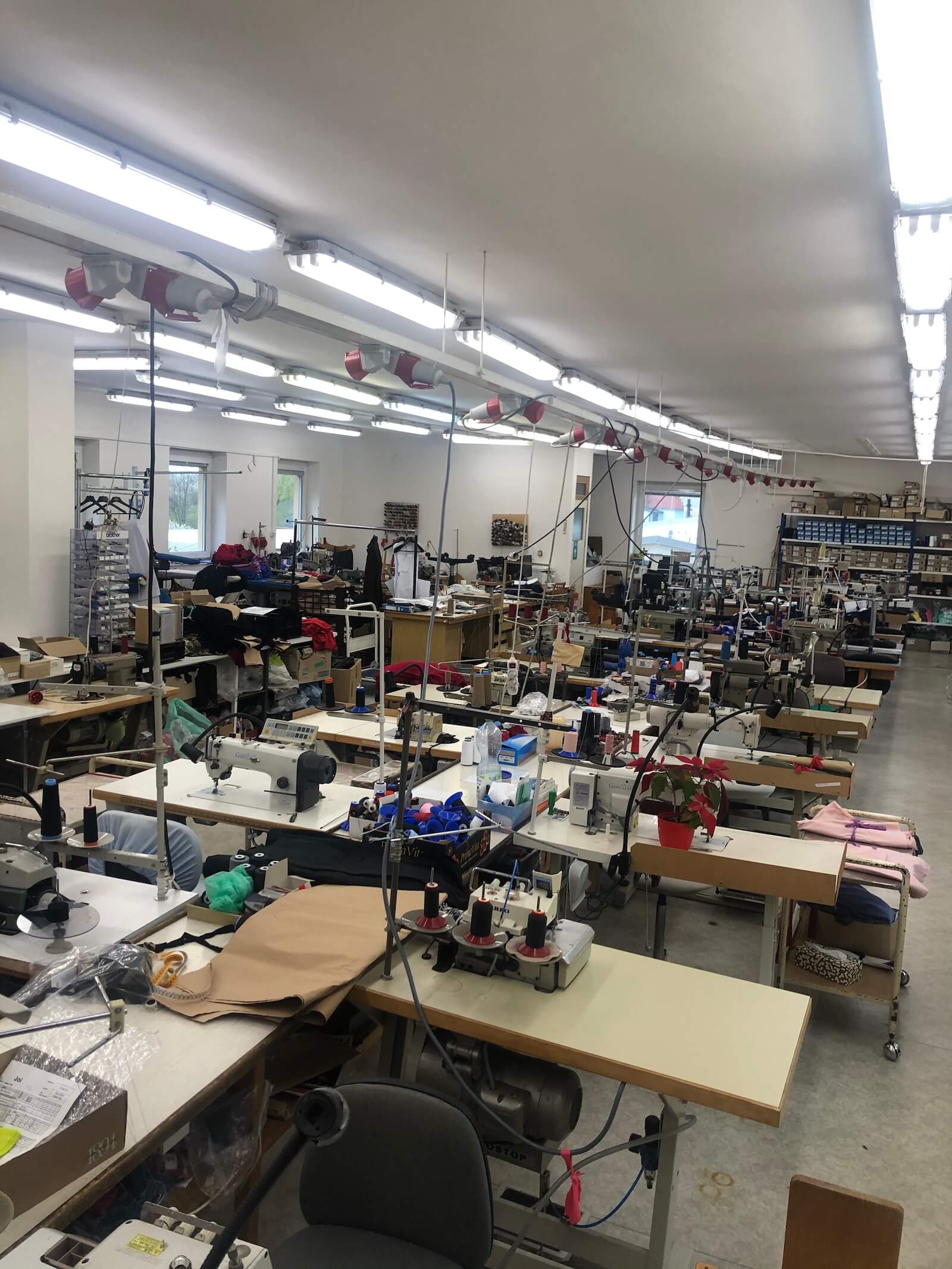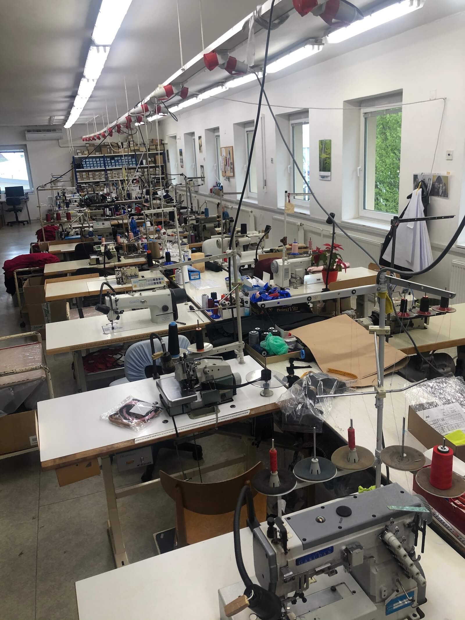 Dílna je vybavena i japonskými stroji YAMATO ( tzv. flatlocky). Máme i vlastní stříhárny.